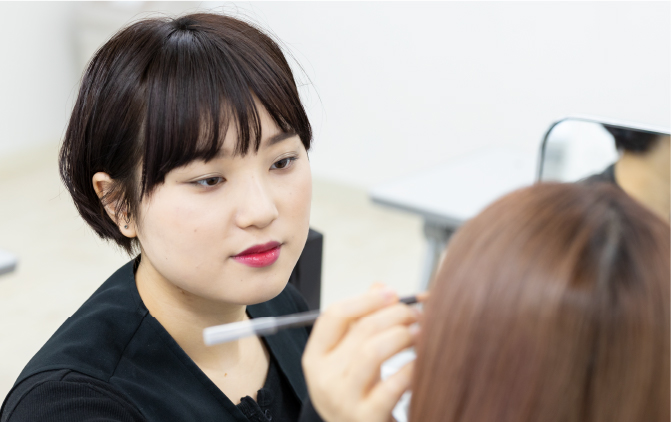 メイクとネイルを中心にエステ、ヘアー、着付け、アロマテラピーなど美容分野で必要とされる技術や知識をトータルで身に付けます。