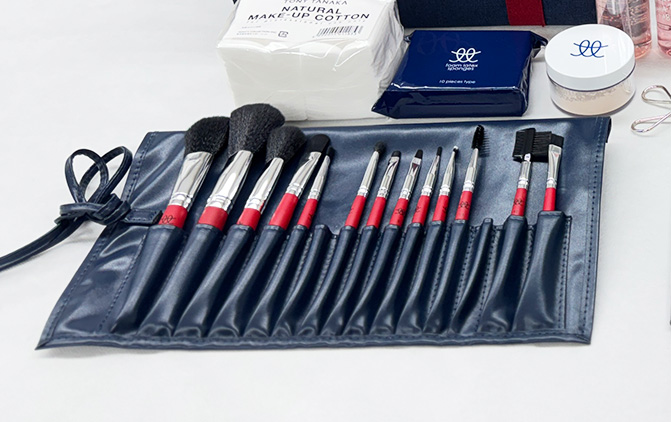 シュウウエムラの基本メソッドには、メイクを効率よく仕上げる正確なテクニックに留まらず、ブラシの肌当たりやコミュニケーションなど、心地よいメイクの為のスキルが含まれています。手の込んだメイクをスマートに施術するための技術が身に付くはず。